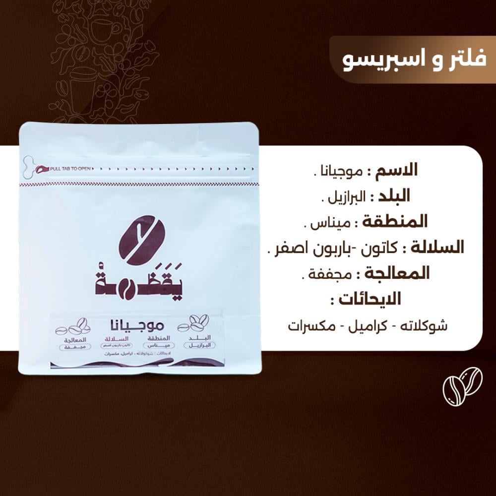 قهوة موجيانا برازيل الأصيلة بنكهاتها الكلاسيكية وجودتها العالية، نقدمها لكم تحت اسم "موجيانا" من متجر بن يقظة.